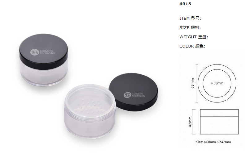 6015# 18g Plastic Double Wall Loose powder Case Empty Black Loose Powder Sifter Jar