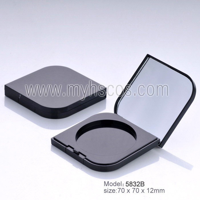 Wholesale hot sale makeup cosmetic black pressed empty compact powder case packaging #5832B
