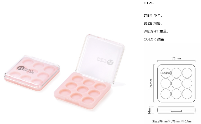 9 colors square Eyeshadow palette empty Pressed Eyeshadow Case 1175#