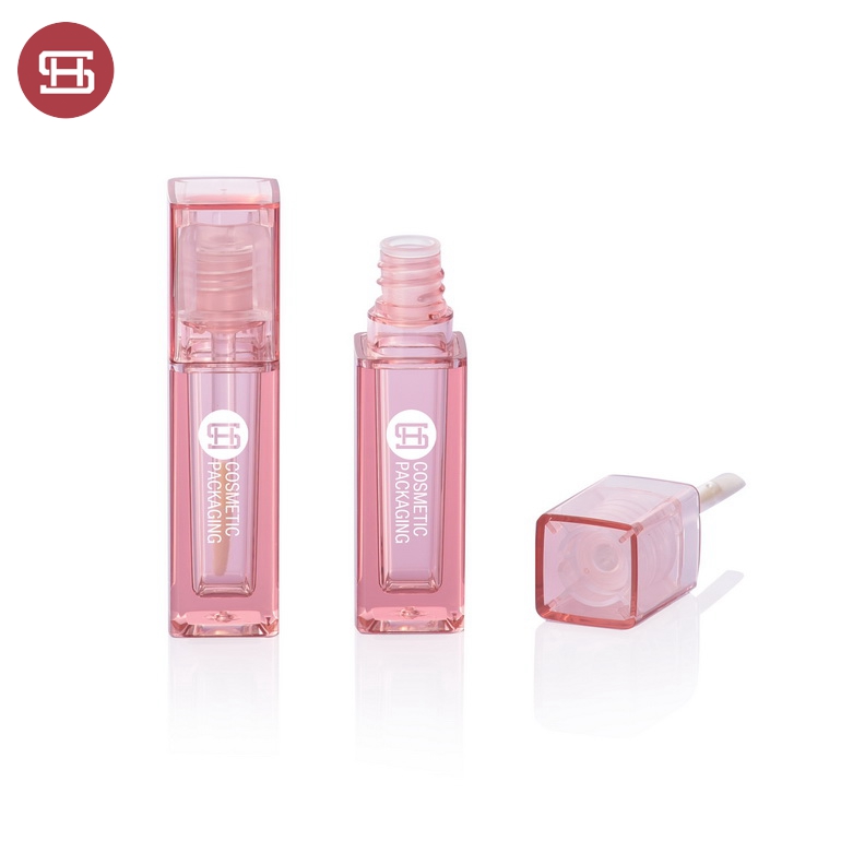 9919# New Arrival Square Shape Plastic Empty Transparent Pink Color Lip Gloss Bottle