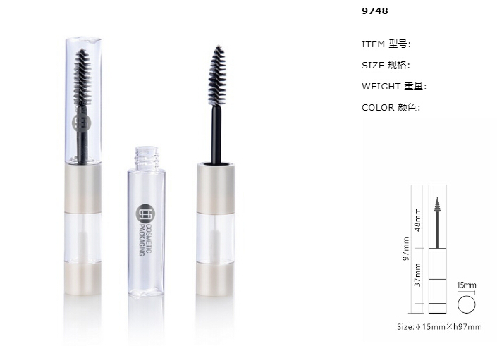 China Manufacturer for Pentagonal Mascara Bottles - 9748# double ended mascara tube / lip gloss container packaging with wand – Huasheng