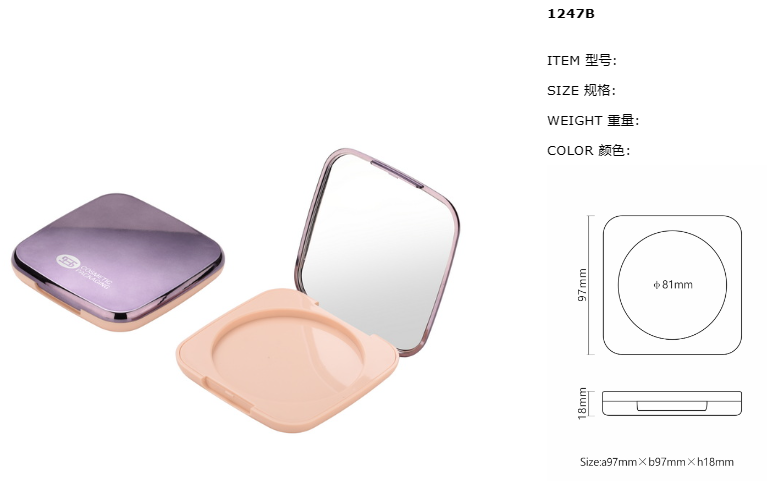 Empty compact powder case with mirror square cosmetic powder container #1247B