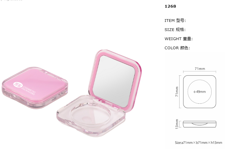 Empty compact powder case with mirror square cosmetic powder container #1268