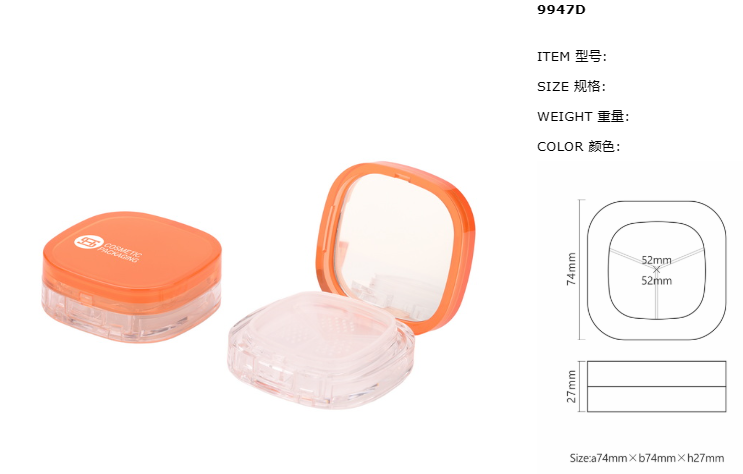 Empty square loose powder container 3 compartment loose powder case #9947D