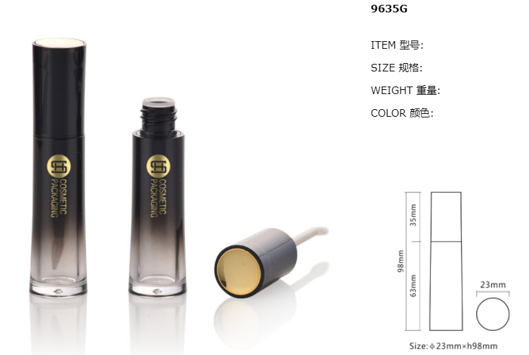 New promotion clear round makeup cosmetic plastic empty lipgloss tube containers with brush #9635G