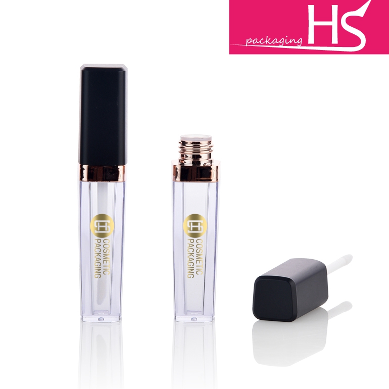 New promotion square makeup cosmetic plastic empty lipgloss tube containers with brush #9516