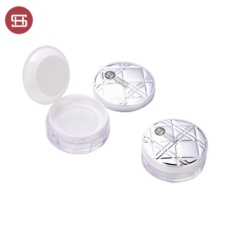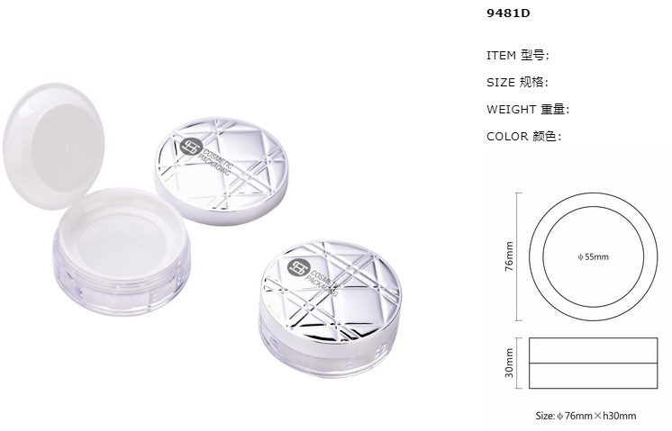 Round Empty loose powder container loose powder case with puff layer #9481D